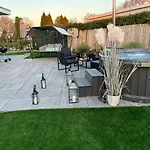 The 1-bedroom Luxus Chalet „Wasserblick“ Lathum is located merely 450 metres from Rhederlaag and offers guests to relish a terrace as well as a swimming pool. Featuring a Jacuzzi, the beachfront holiday home is nestled about a 10-minute drive from De Dumpel Public Swimming Pool.